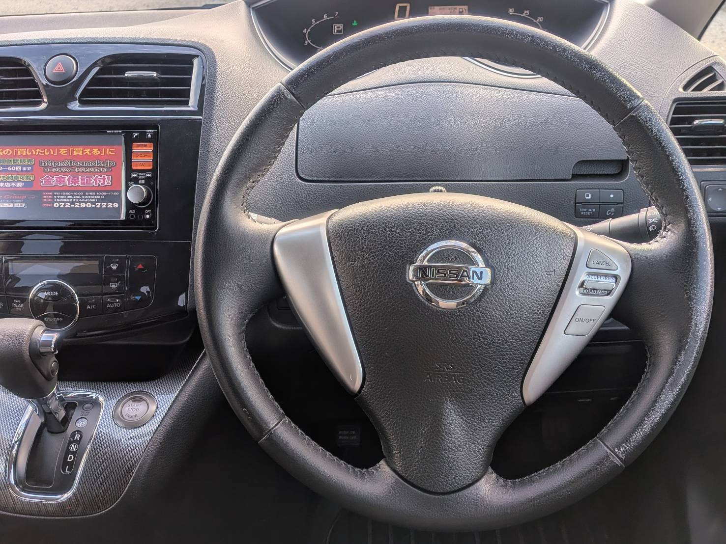 純正SDナビ(CD・DVD・Bluetoothオーディオ・フルセグTV・SD) バックカメラ ビルトインETC 両側パワースライドドア プッシュスタート&スマートキー アイドリングストップ 革巻きステアリング クルーズコントロール Wエアコン ウォークスルー マルチセンターシート シートバックテーブル 2列目サンシェード AUTOライト HIDヘッドライト フォグランプ 電格ミラー ウィンカーミラー 純正16インチAW