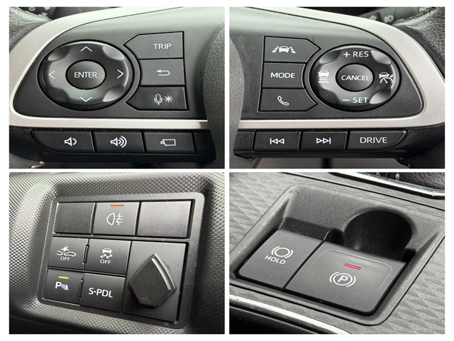 純正SDナビ 地デジフルセグTV CD DVD AUX Bluetooth バックカメラ アラウンドビューモニター コーナーセンサー 革巻ステアリング ステアリングスイッチ クルーズコントロール エマージェンシーブレーキ ビルトインETC オートライト LEDヘッドライト Fフォグライト 横滑り防止装置 オールモード4X4-i シートヒーター オートエアコン 電動リアゲート キーレス プッシュスタート インテリジェントキー ウィンカー付き電動格納ミラー サイドバイザー 純正17インチAW 納車時新品タイヤ装着