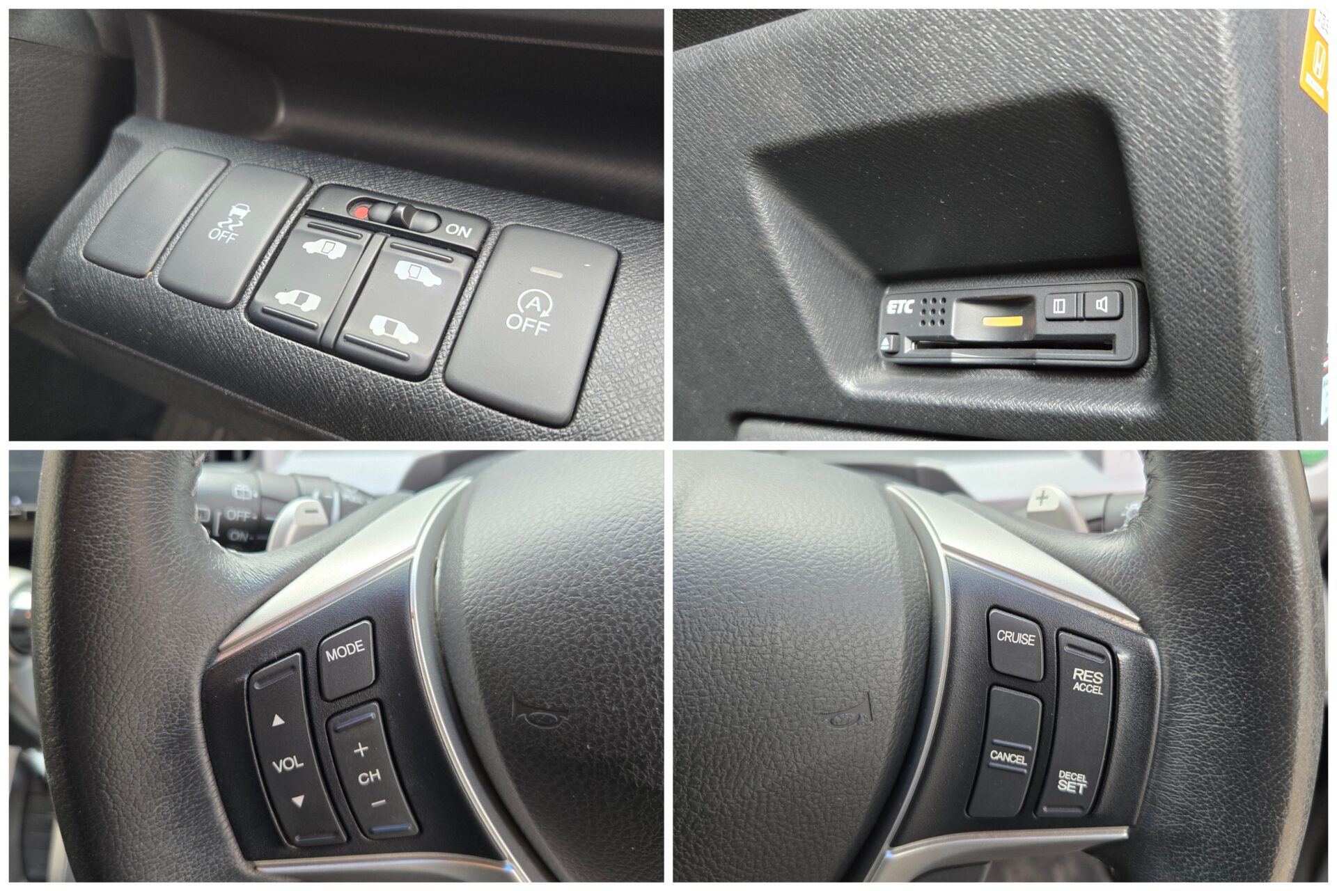 純正インターナビ CD DVD 地デジフルセグ Bluetooth ハンズフリー バックカメラ ビルトインETC 革巻ハンドル ステアリングスイッチ クルーズコントロール パドルシフト オートライト LEDヘッドライト フォグランプ ウィンカー付電動格納ドアミラー 横滑り防止装置 シティブレーキアクティブシステム アイドリングストップ Wオートエアコン ハーフレザーシート 両側パワースライドドア 3列シート ウォークスルー キャプテンシート オットマン 純正フリップダウンモニター ドアバイザー スマートキー プッシュスタート 純正17インチAW