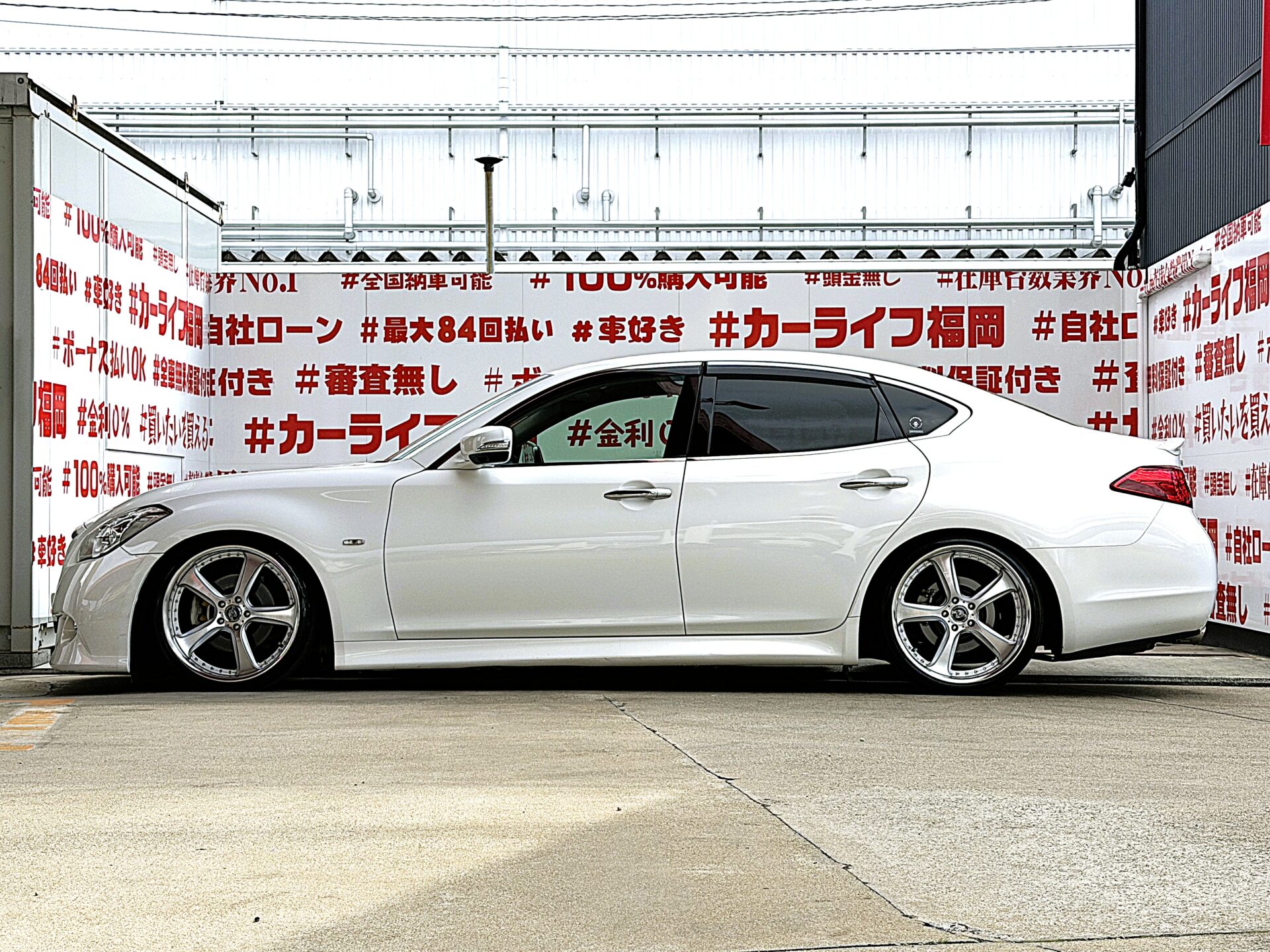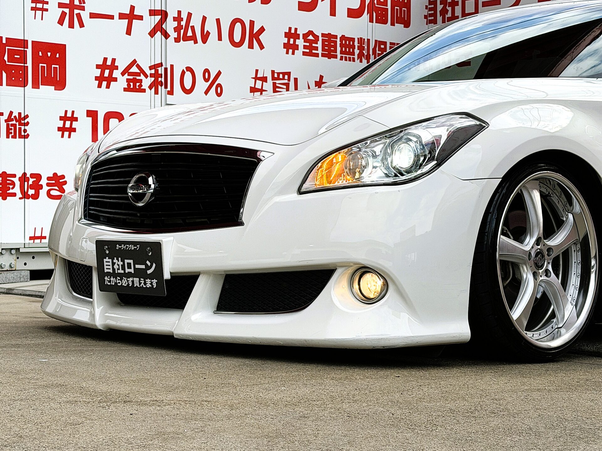 ニッサンの大型ボディ・高級セダン!!人気深リムホイール装着済!!※ご納車時は車高調整後のご納車となります。