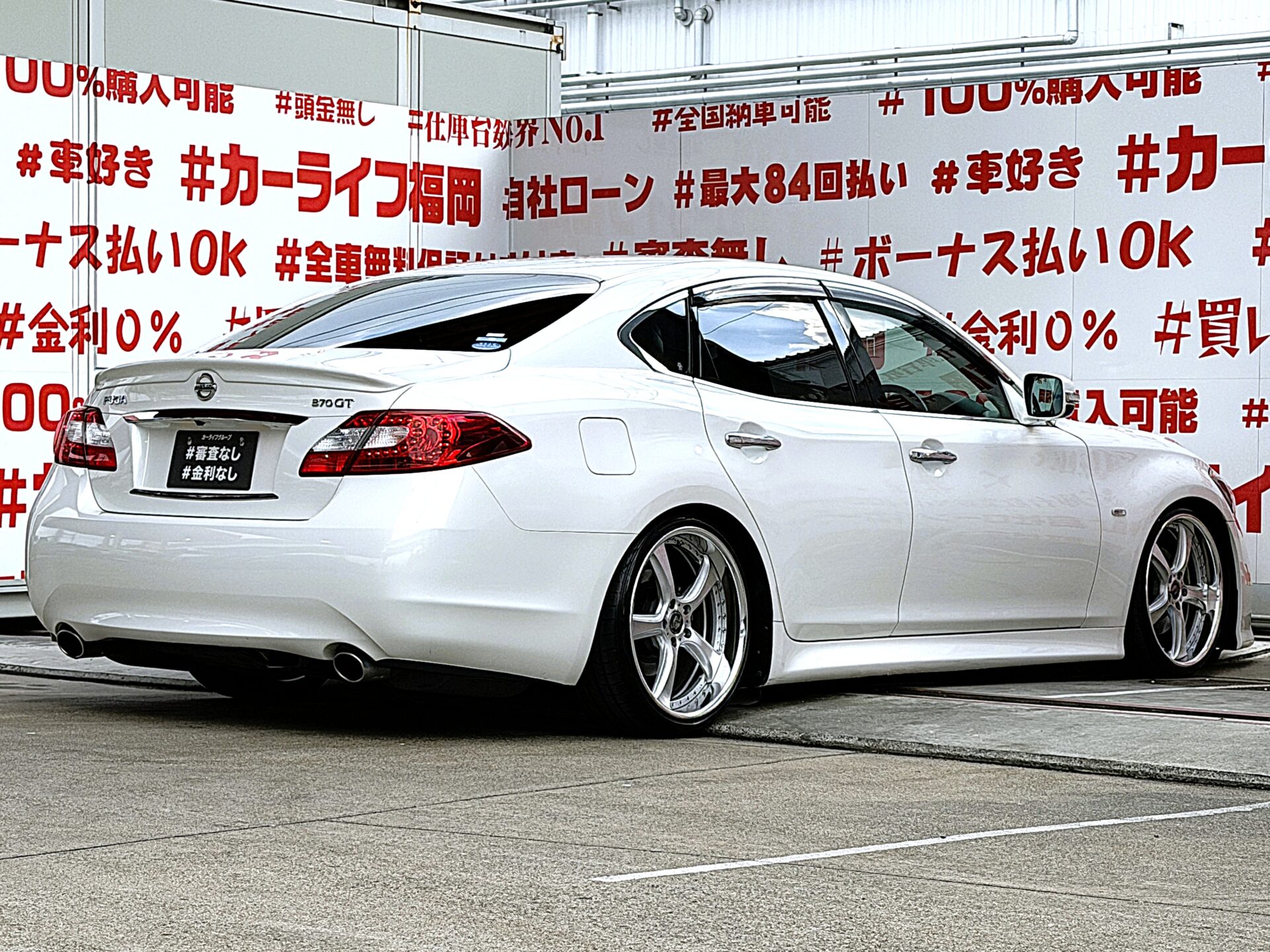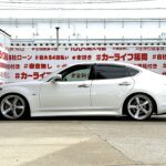 FUGA フーガ 370GT【総合評価優良車】【カスタム】"フロント大型オプションバンパー装着タイプ"V6・3,700cc!!💎TANABE Vienna KAIROS 20インチAW&新品車高調ローダウン済💎驚異の333馬力のハイパワーエンジン🔥純正HDDマルチナビ🗾DVD📀Bluetooth🎶📱📞フルセグTV内臓型📺💎高級感溢れるウッド調パネル&ハーフレザーシート💺クルーズコントロール機能付で楽々高速走行🚗✨内外装美車✨ワンオーナー👆🌈車検2年付🚗福岡店専用HPでも在庫確認可能‼✨ 【carlifegroup.fukuoka.jp/】で検索🕵️♂️