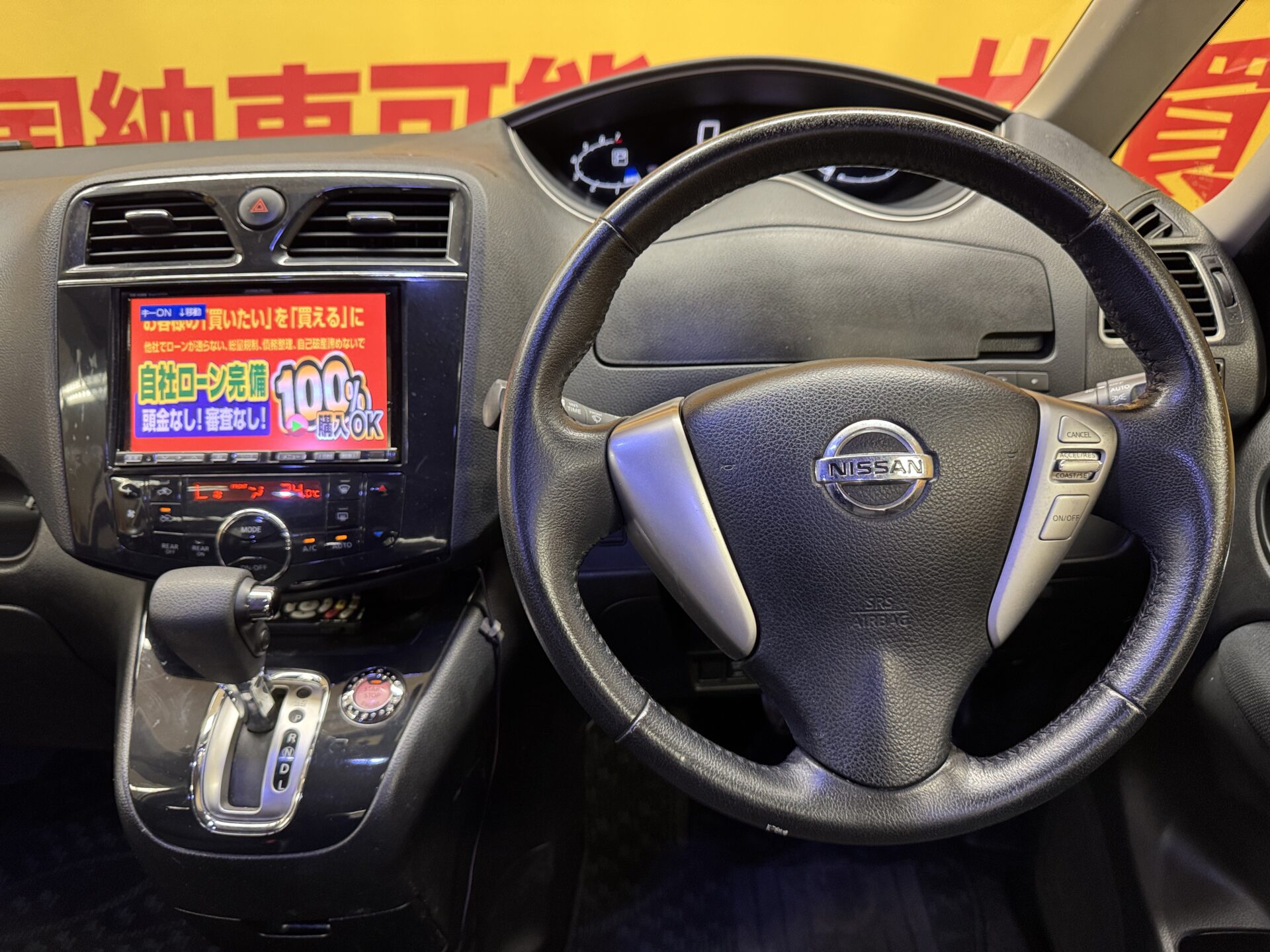純正SDナビ CD DVD 地デジフルセグTV バックカメラ 後席フリップダウンモニター 革巻きハンドル クルーズコントロール ビルトインETC オートライト HIDヘッドライト フォグランプ 横滑り防止装置 アイドリングストップ Wオートエアコン 両側パワースライドドア ウィンカー付き電動格納ドアミラー バニティーミラー インテリキー プッシュスタート 2列目右側サンシェード ドアバイザー 純正16インチAW