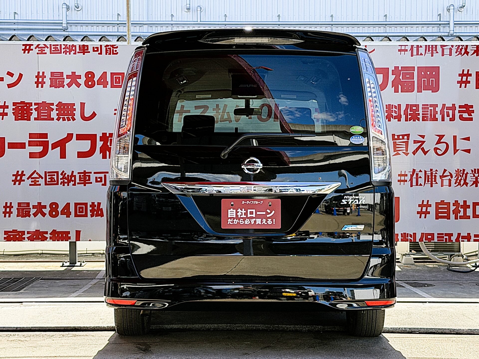 SERENA セレナ ハイウェイスター S-HYBRID"低価格ハイブリッドミニバン・リアルーフスポイラー装着済"月々24,100円~OK👛純正SDナビ🗾DVD💿Bluetooth🎶📱📞フルセグTV内蔵型📺走行中映像視聴可能👀Wエアコンタイプでリア空調も温度操作OK👆🚪ウォークスルーで車内の行き来自由自在💺リアサイドシェード付・UV・プライバシーも安心👀アルパインフリップダウンモニター付🎉高速走行はクルーズコントロール機能にお任せ・楽々運転🎉納車時新品タイヤ装着🌈車検2年付🌈🚗福岡店専用HPでも在庫確認可能‼✨