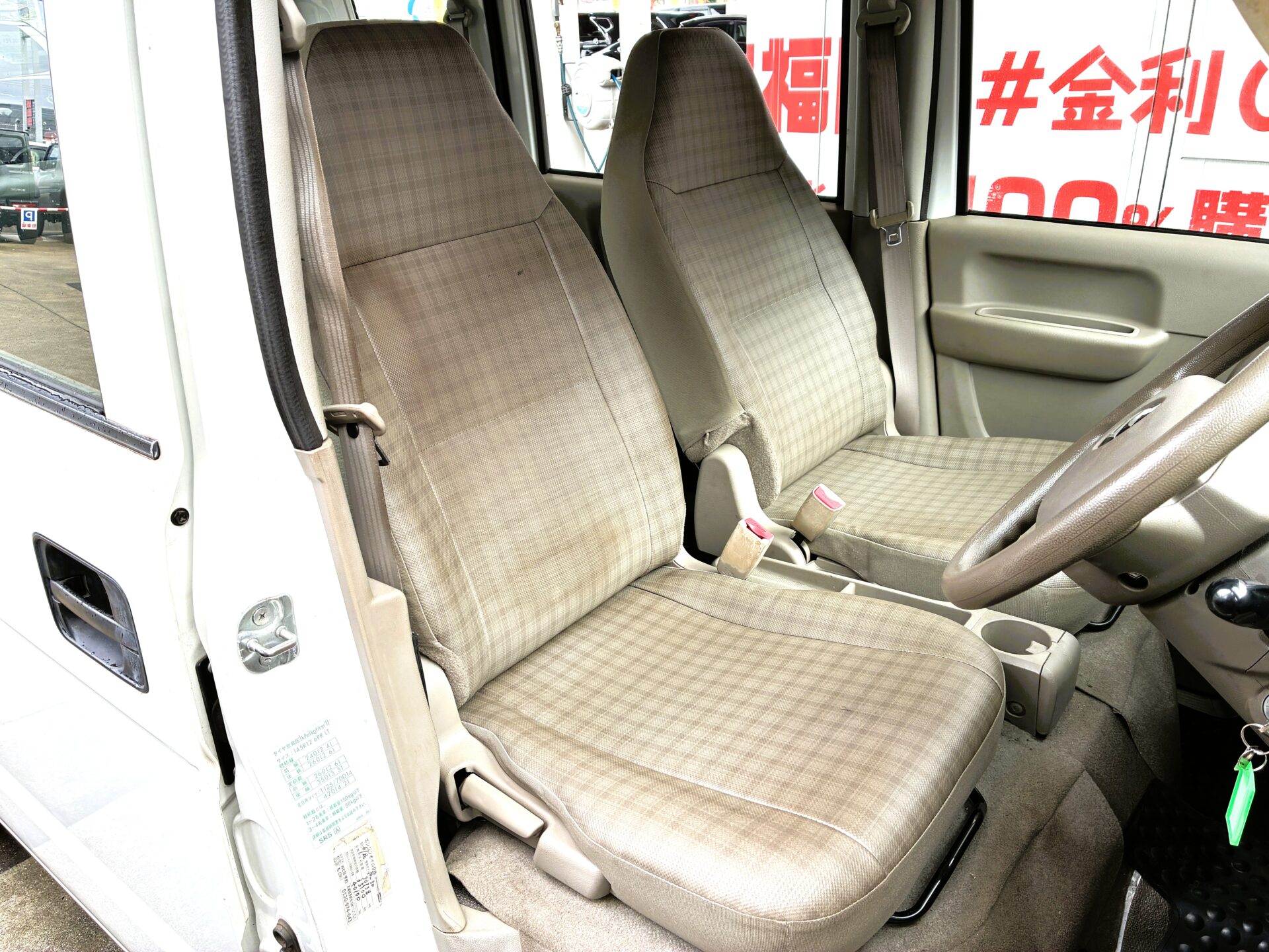 社外CDプレイヤー マニュアルエアコン 集中ドアロック 前席パワーウィンドウ 両側スライドドア 後席ウィンドウフィルム サイドバイザー ハイルーフ ヘッドライトレベライザー 車検2年付 12インチスチールホイール