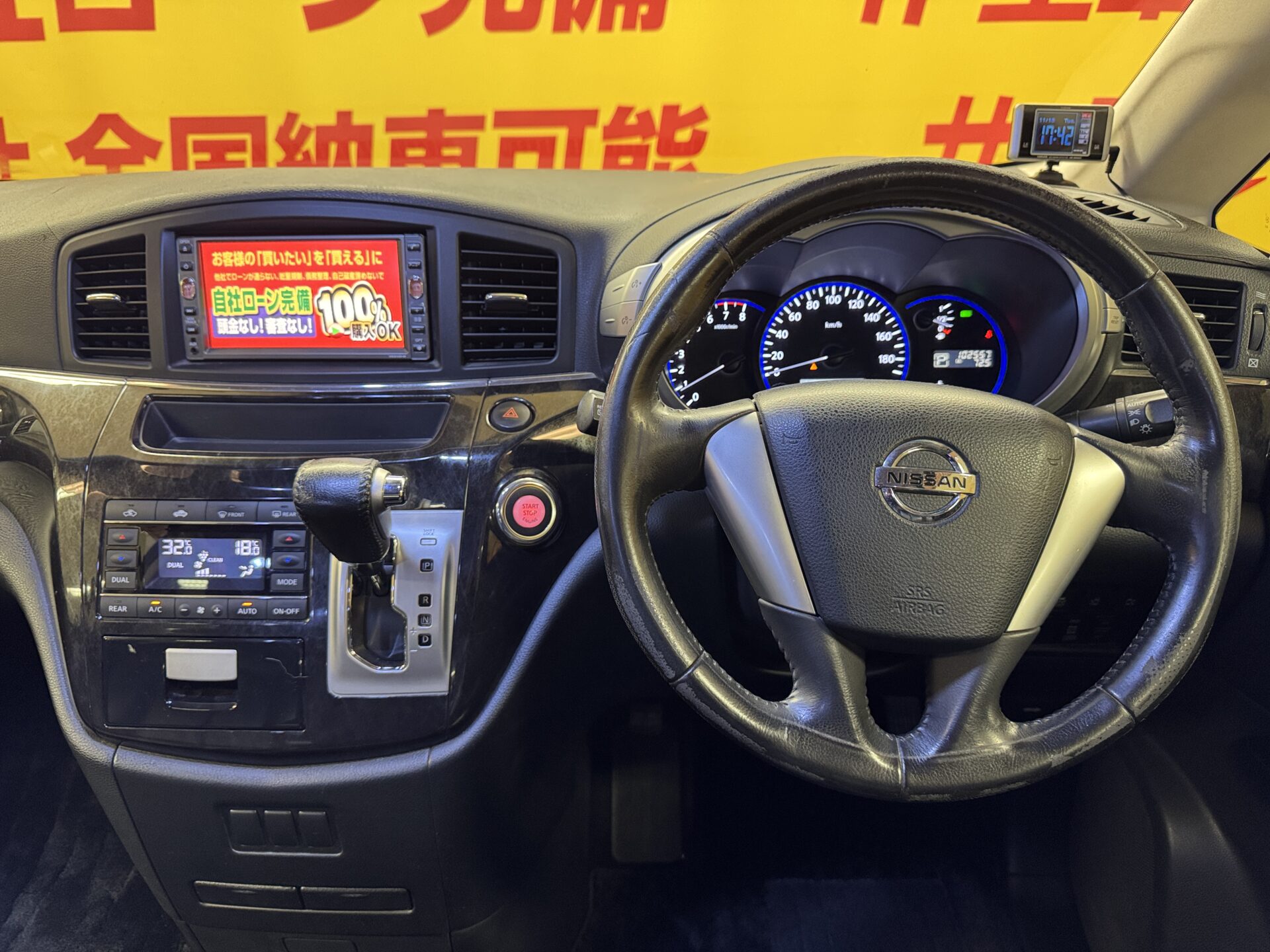社外ナビ 地デジフルTV DVD CD Bluetooth 前席シートヒーター ミラーヒーター フロントガラスヒーター フルタイム4WD HIDヘッドライト フォグランプ オートライト オートエアコン 革巻きハンドル クルーズコントロール ドアバイザー ウィンカー付き電動格納ドアミラー 純正17インチAW 観音開きリアゲート 納車時新品タイヤ4本装着