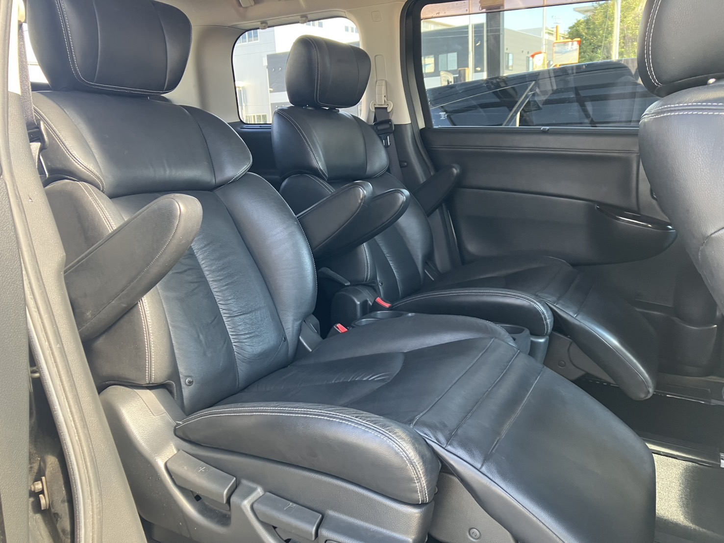 純正HDDナビ(CD・DVD・フルセグTV・Bluetoothオーディオ・SD・ミュージックサーバー) バックカメラ 純正ワイドフリップダウンモニター 両側パワースライドドア ビルトインETC プッシュスタート&スマートキー 障害物センサー デュアルエアコン Wエアコン 黒革調シートカバー キャプテンシート&オットマン ウォークスルー ウッドコンビ&革巻きステアリング ステアリングスイッチ AUTOライト HIDヘッドライト フォグランプ ウインカーミラー 純正18インチAW