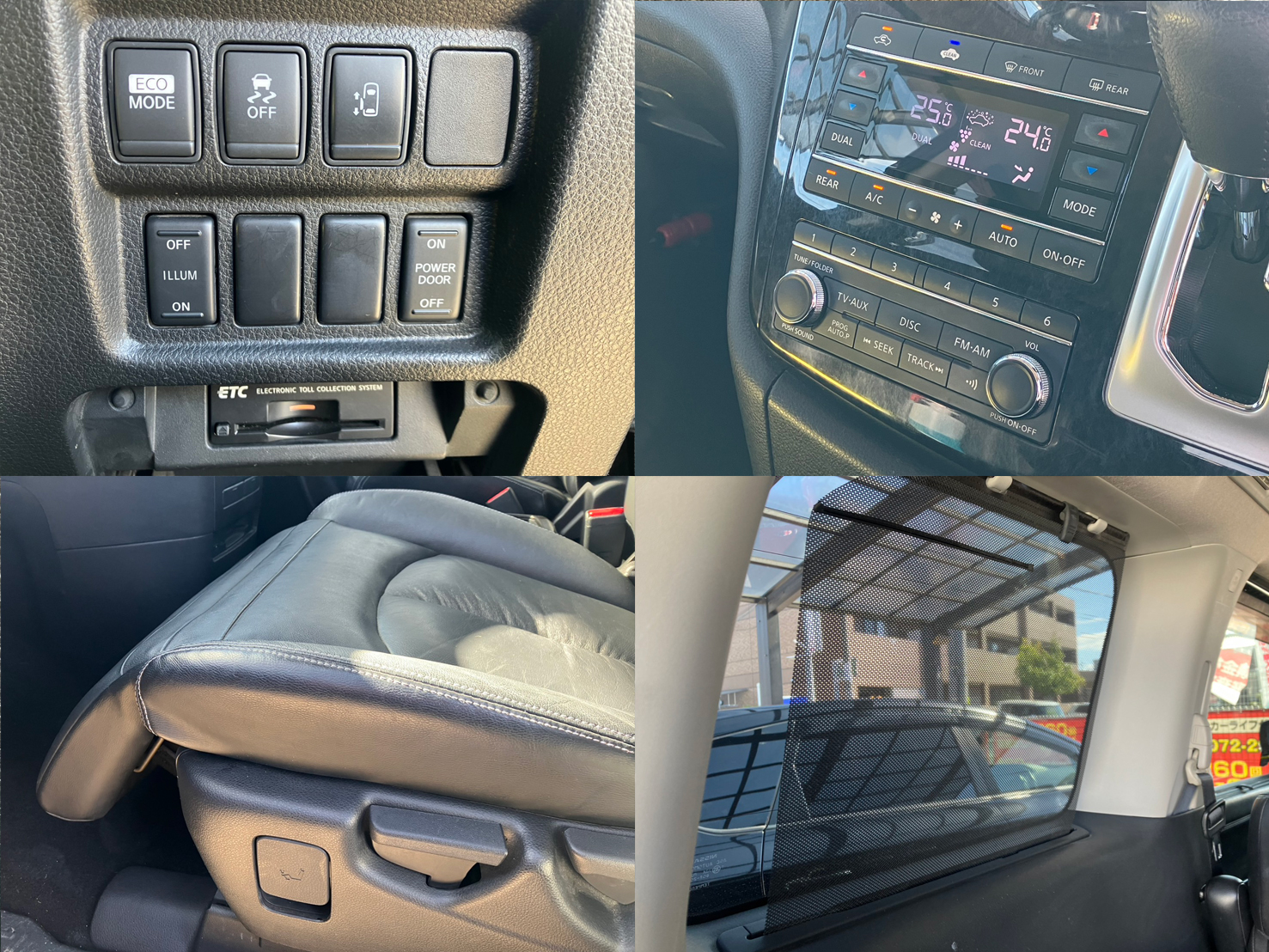 社外SDナビ(CD・DVD・フルセグTV・Bluetoothオーディオ・SD) バックカメラ 両側パワースライドドア ビルトインETC アイドリングストップ プッシュスタート&スマートキー 運転席側パワーシート ハーフレザーシート キャプテンシート&オットマン ウォークスルー 3列目床下格納シート 純正プラズマクラスターイオン搭載AC ドライブレコーダー 革巻きステアリング ステアリングスイッチ クルーズコントロール パドルシフト 後席送風スイッチ 2列目サンシェード リモコンエンジンスターター AUTOライト LEDヘッドライト フォグランプ ウインカーミラー 純正17インチAW