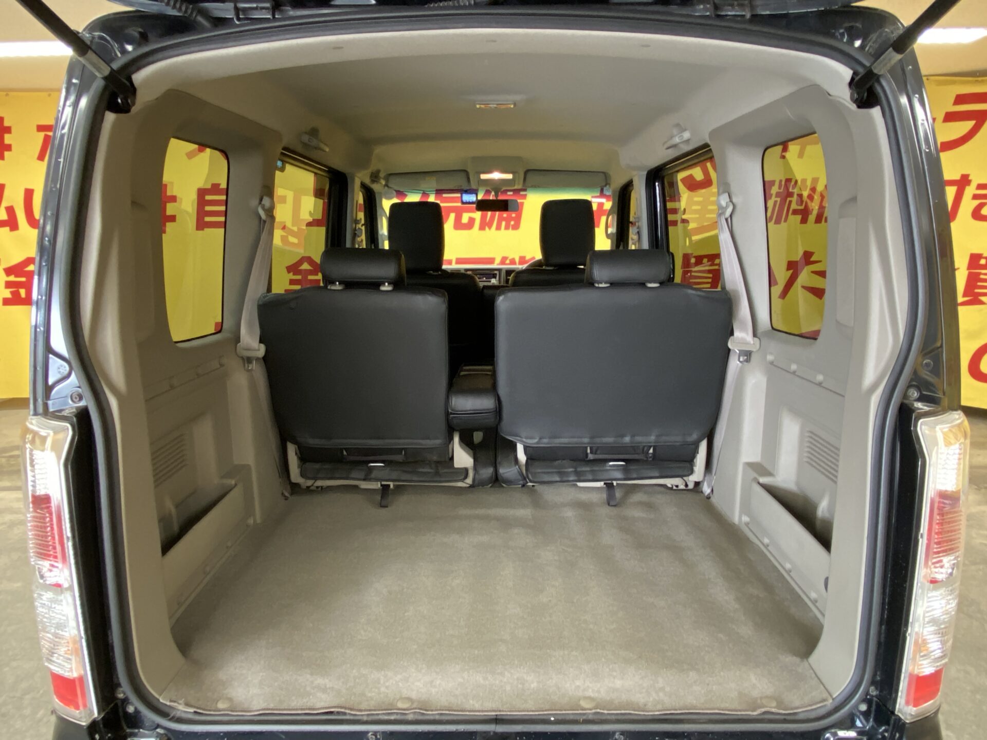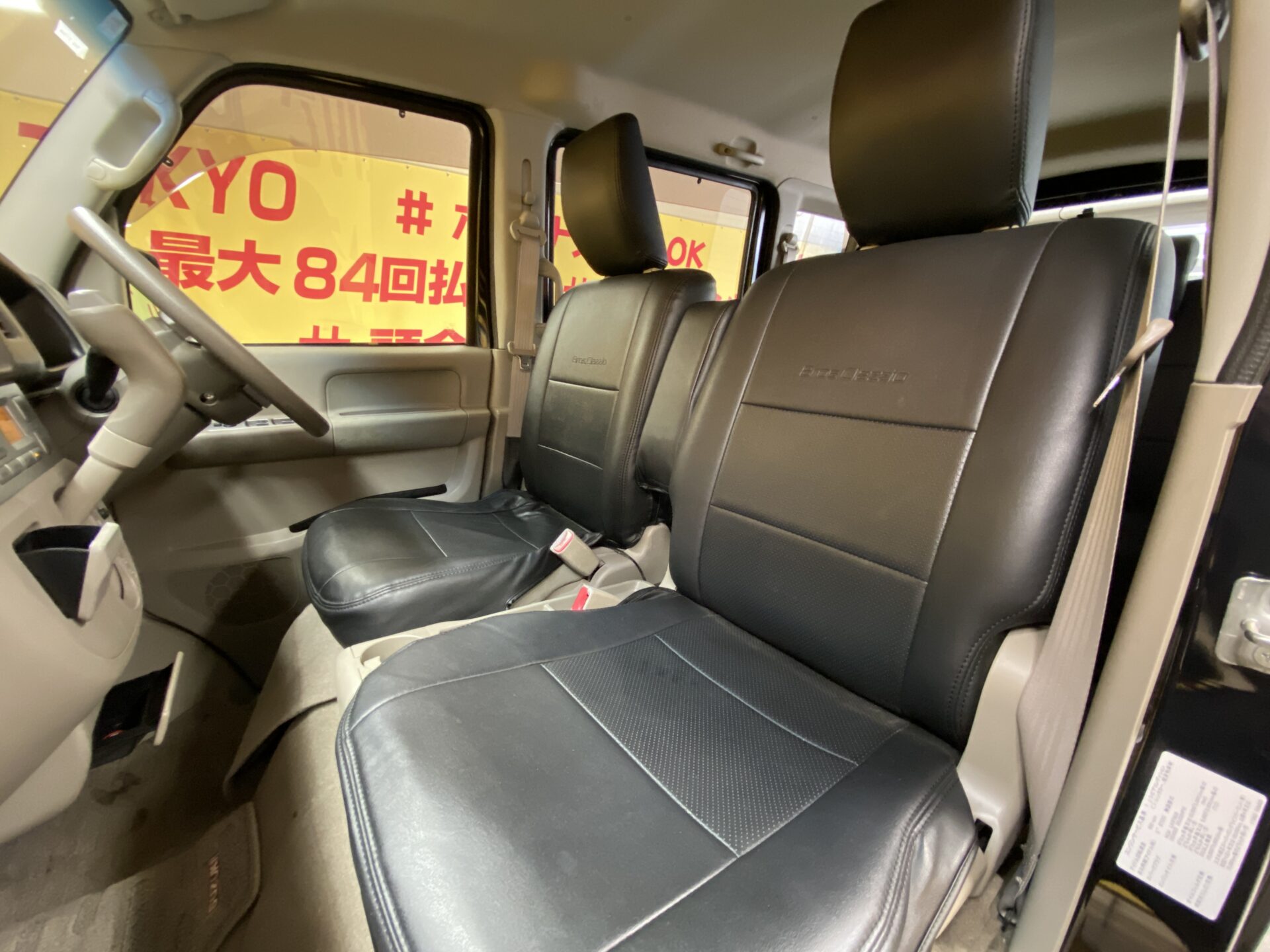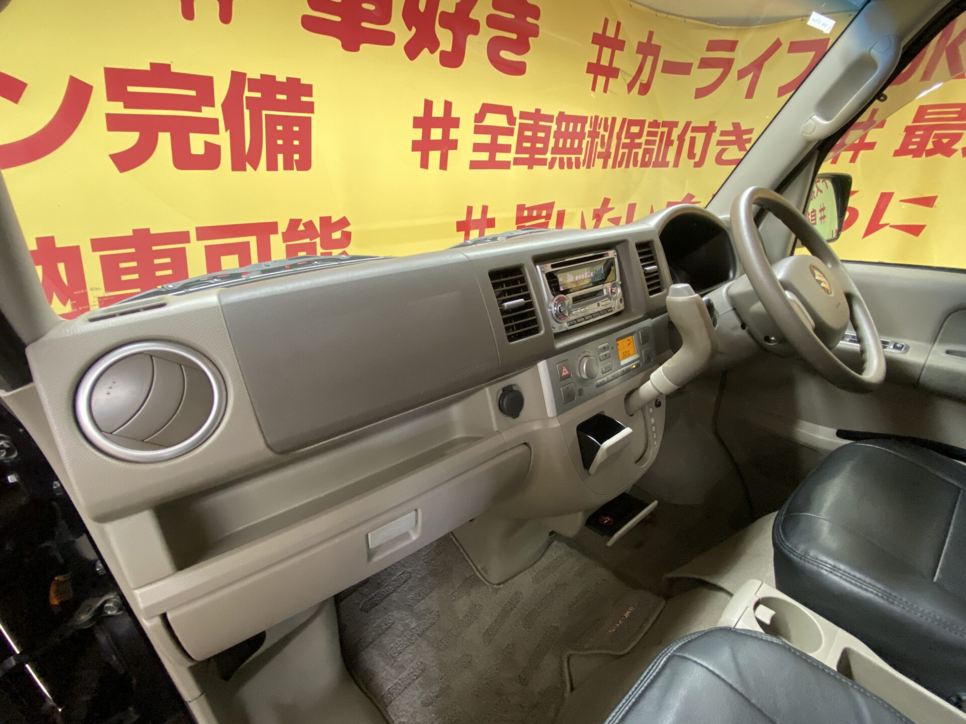 両側電動スライドドア 左側オートステップ HIDヘッドライト・フォグ ヘッドライトレベライザー 電格ミラー オートエアコン リアヒーター 黒革シートカバー 純正14インチアルミホイール ターボ キーレス 社外オーディオ CD MD 前後カロッツエリアドライブレコーダー キーレス サイドバイザー