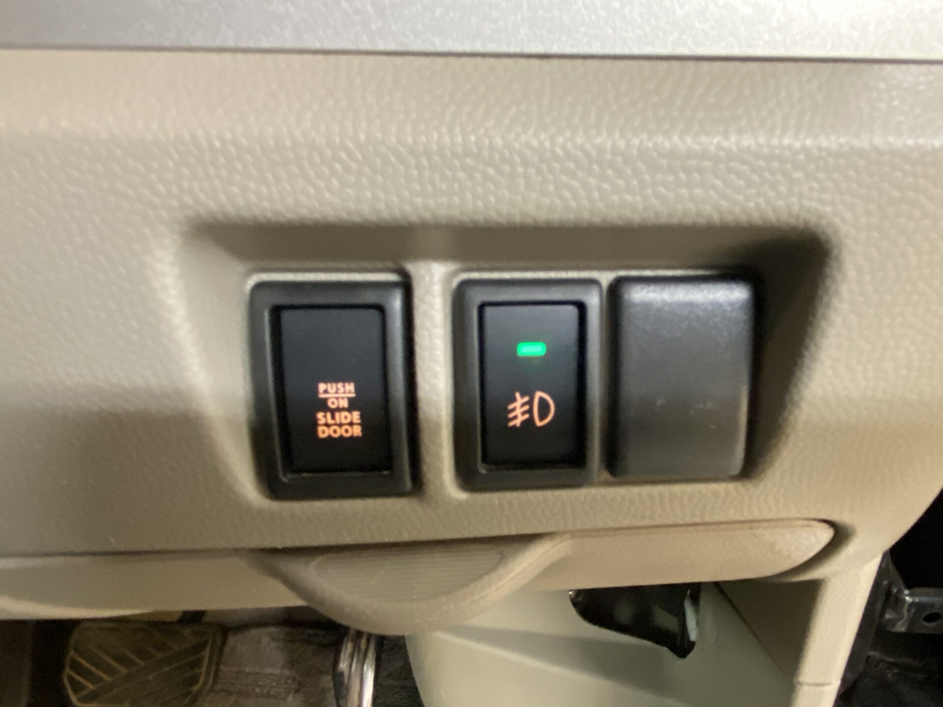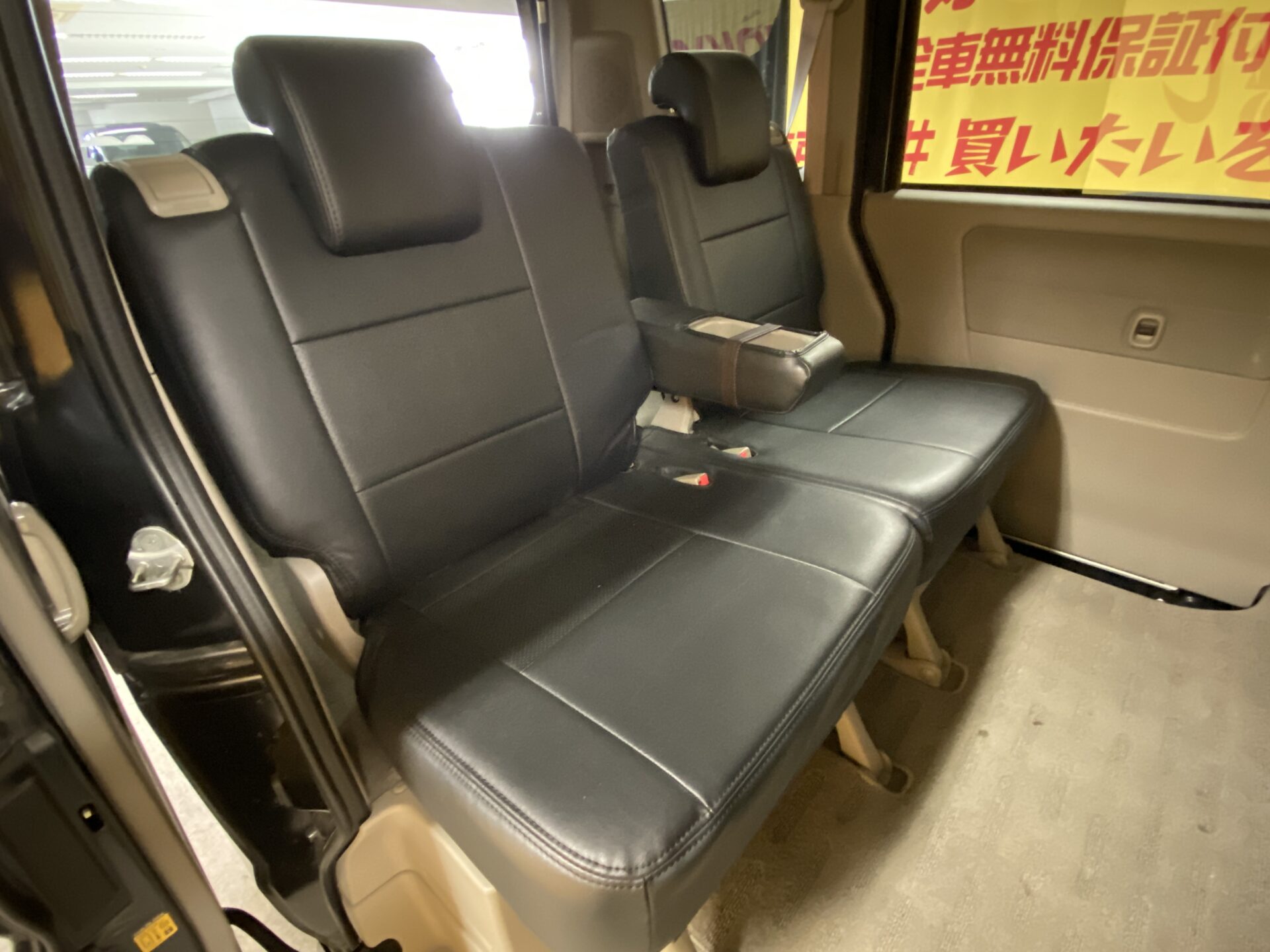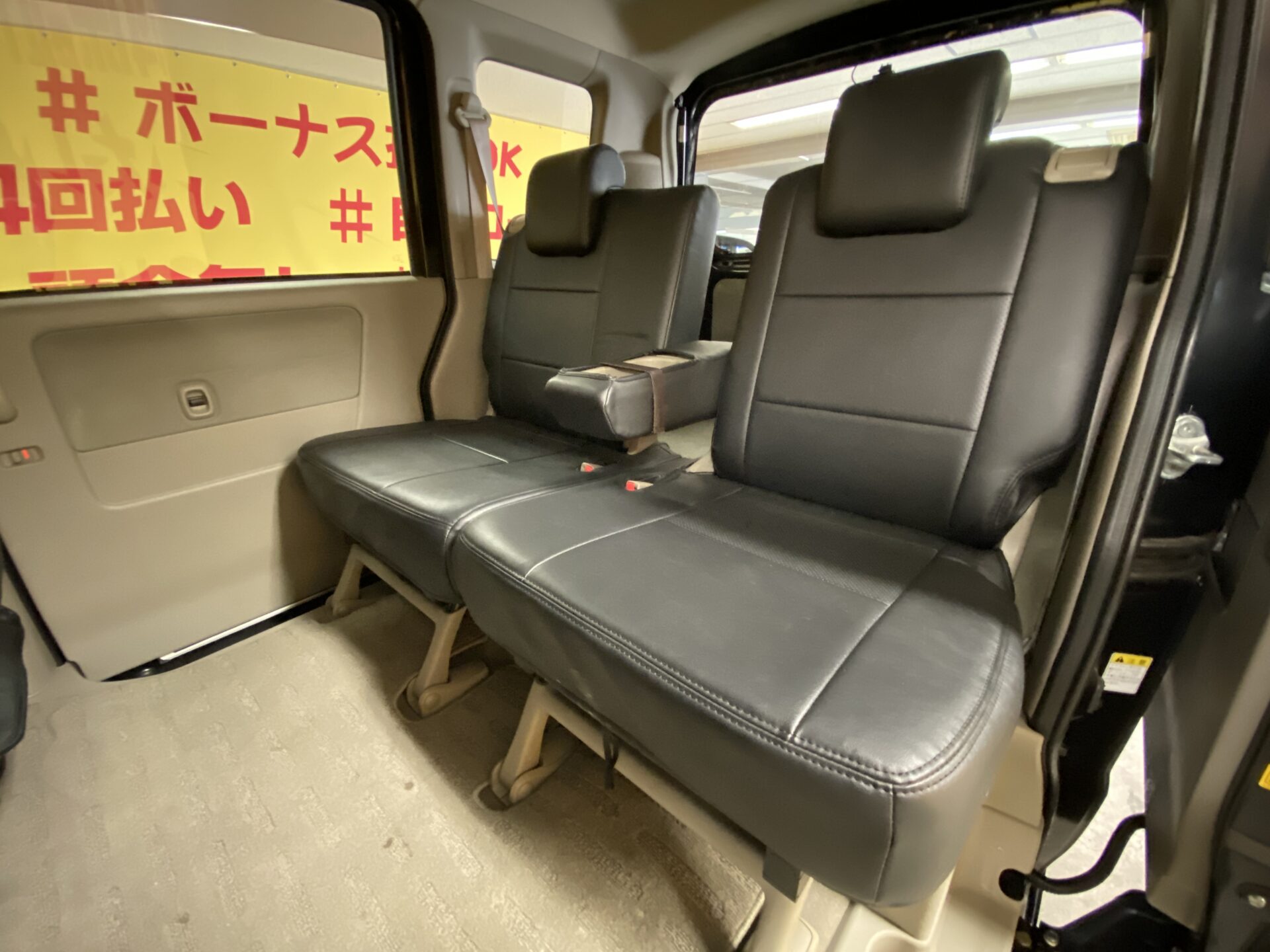 両側電動スライドドア 左側オートステップ HIDヘッドライト・フォグ ヘッドライトレベライザー 電格ミラー オートエアコン リアヒーター 黒革シートカバー 純正14インチアルミホイール ターボ キーレス 社外オーディオ CD MD 前後カロッツエリアドライブレコーダー キーレス サイドバイザー
