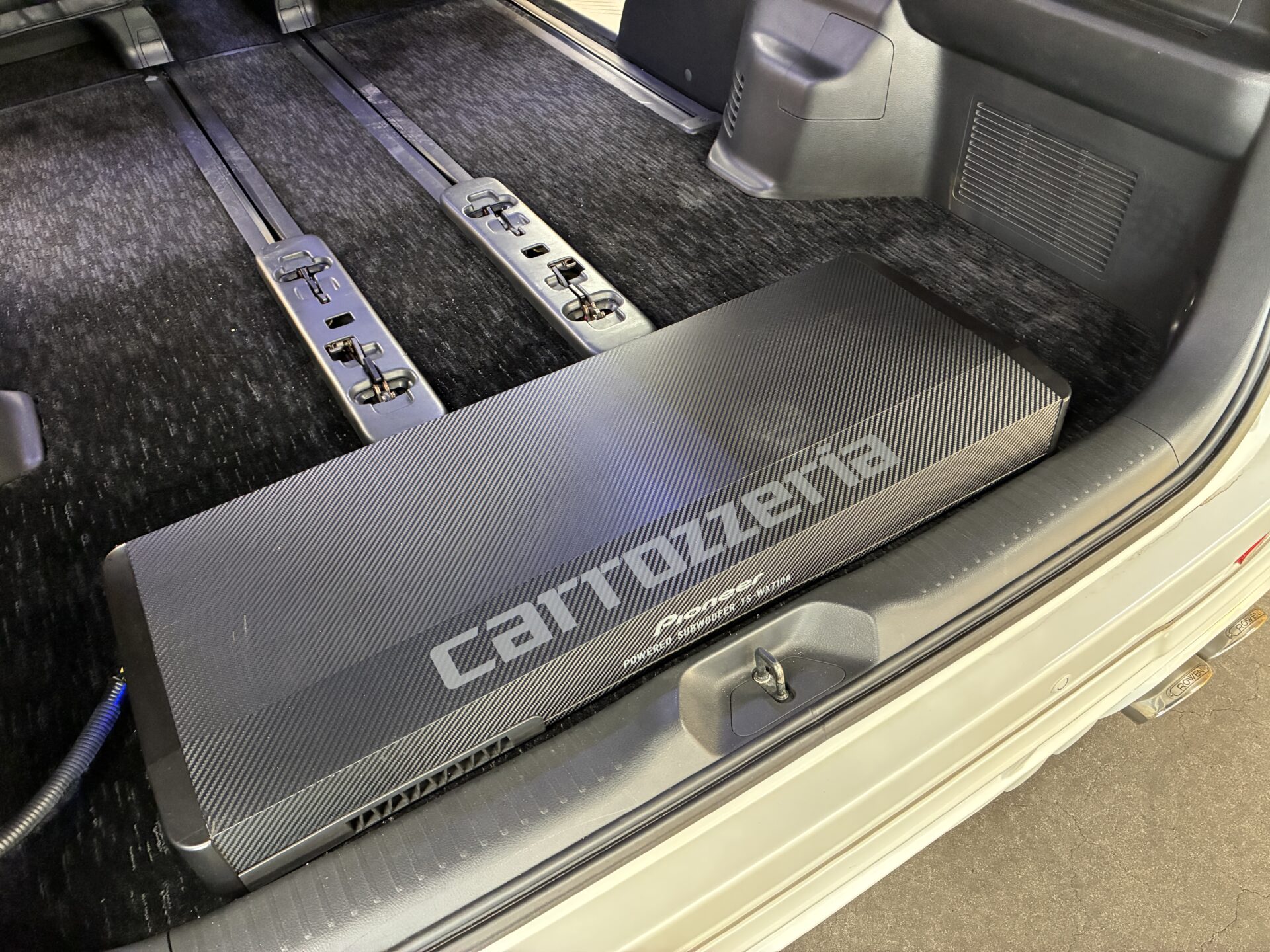 カロッツエリアメモリーナビ 地デジワンセグTV CD DVD SD Bluetooth AUX Pioneer製サブウーファー バックカメラ ビルトインETC ステアリングスイッチ オートライト HIDヘッドライト LEDフォグライト デュアルエアコン 横滑り防止装置 レザー調シートカバー 2列目オットマン付きキャプテンシート 3列シート ウォークスルー 両側スライド左電動ドア ROWEN製フルエアロ ROWEN製4本出しリアマフラー 車高調ローダウン 社外LEDテールライト ホットスタッフ製20インチAW