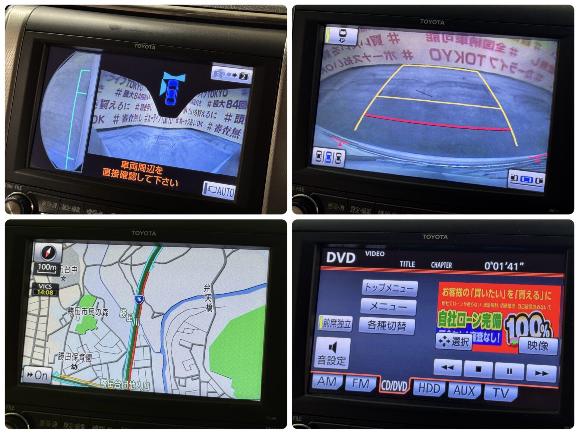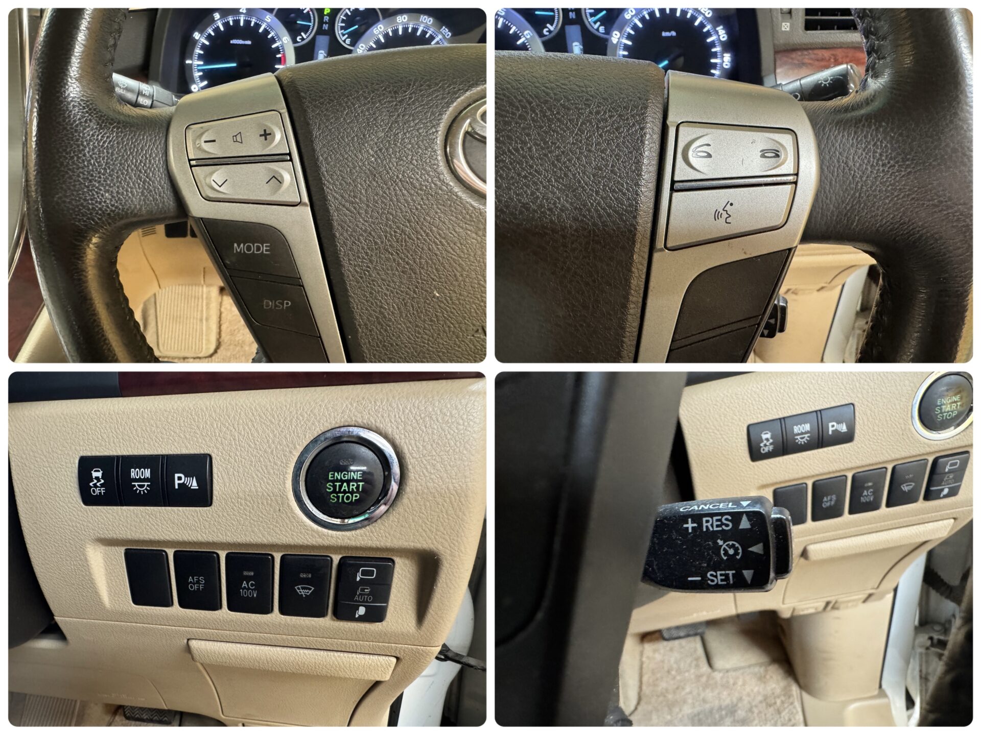 純正HDDナビ 地デジフルセグTV CD DVD Bluetooth バックカメラ ビルトインETC ウッドコンビハンドル ステアリングスイッチ クルーズコントロール ウィンカー付き電動格納ミラー クリアランスソナー 両側パワースライドドア イージークローザー ワイパーデザイアー オートエアコン デュアルエアコン Wエアコン 純正フリップダウンモニター 助手席・2列目オットマン付キャプテンシート 運転席シートメモリー 前席パワーシート オートライト HIDヘッドライト フォグ 2WD・4WDオート切替 純正16インチAW 4WD