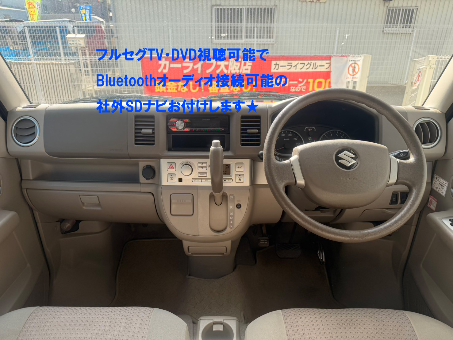 社外SDナビ(CD・DVD・フルセグTV・Bluetoothオーディオ)お付けします 両側スライドドア(左側パワー) キーレス 前後ドライブレコーダー ヘッドライトレベライザー AUTOエアコン リア送風スイッチ フルフラットシート フォグランプ 純正13インチAW