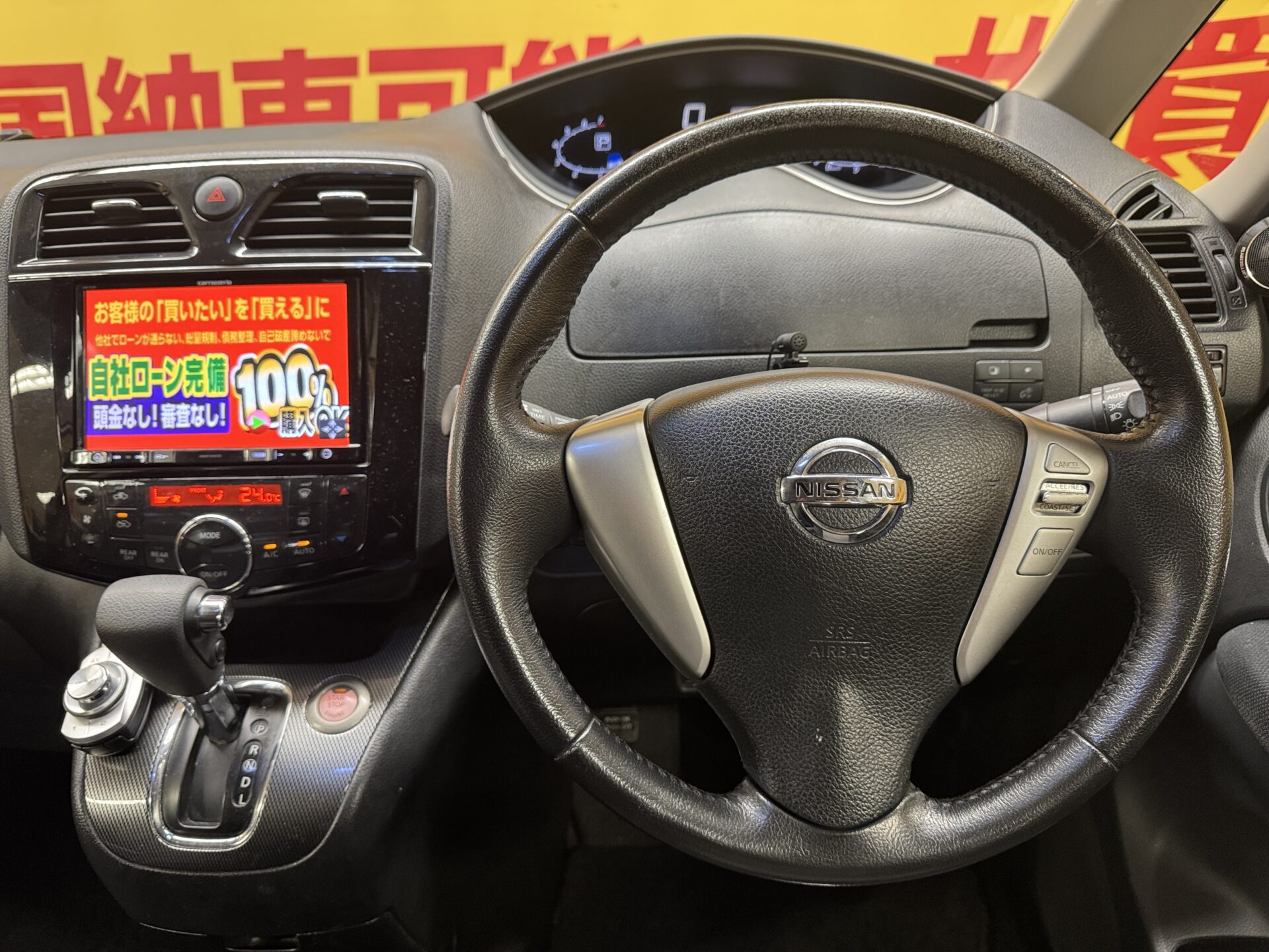 ストラーダナビ 地デジフルセグTV CD DVD Bluetooth バックカメラ ETC 革巻きハンドル パドルシフト ウィンカー付き電動格納ミラー 両側パワースライドドア オートエアコン スマートキー オートライト HIDヘッドライト フォグ 純正16インチAW