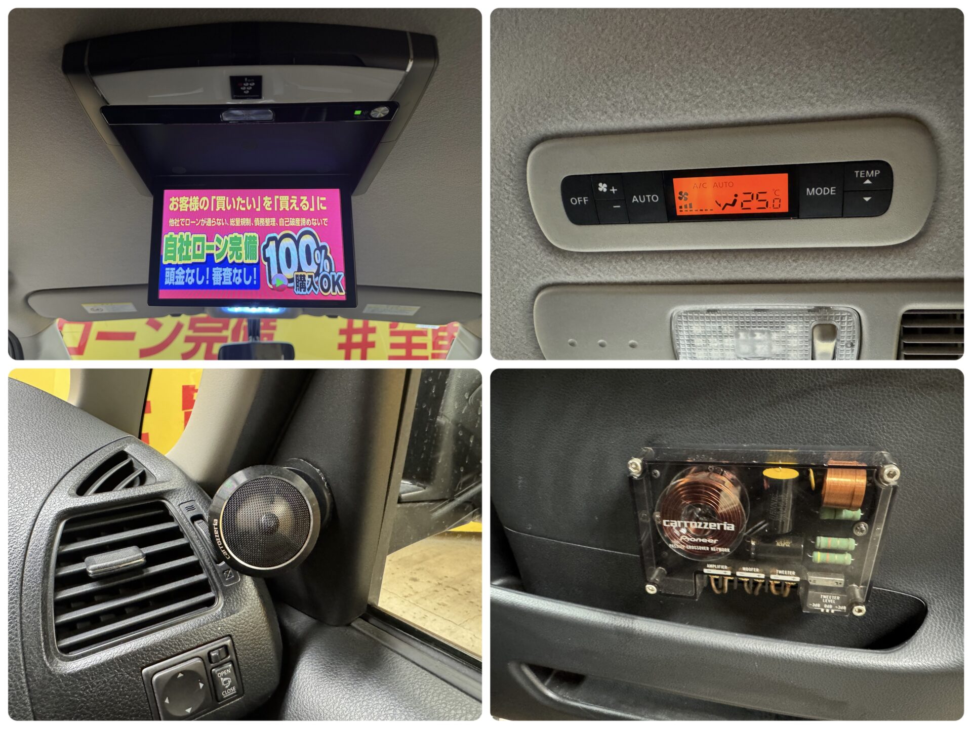 カロッツェリア8インチナビ 地デジフルセグTV CD DVD Bluetooth バックカメラ 革巻きハンドル ウィンカー付き電動格納ミラー クルーズコントロール 両側パワースライドドア アルパイン製フリップダウンモニター 2列目サンシェード カロッツェリアツィーター カロッツェリアクロスオーバーネットワーク オートエアコン Wエアコン ウォークスルー マルチセンターシート 2列目シートバックテーブル ワンタッチオープナー フロントスポイラー プッシュスタート 純正17インチAW