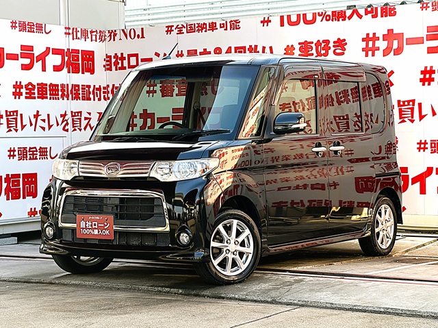 TANTO CUSTOM タント カスタムX 【4WD】【後期型】【車検2年付】【1年保証】💎人気の低価格ハイトワゴン・スライドドアー😲💎センターピラーレス&左側パワースライドドアー『ミラクルオープンドア』👀 リアシートアレンジ次第でラゲッジスペースも自在な万能車輌😲 クラリオンSDナビ🗾DVD📀Bluetooth🎶📱📞フルセグTV内蔵型📺走行中映像視聴可能👀バックカメラ✨夜間走行も視界良好なHIDヘッドライト&フォグランプ💡新品タイヤ4本付🚗福岡店専用HPでも在庫確認可能‼✨ 【carlifegroup.fukuoka.jp/】で検索🕵️♂️