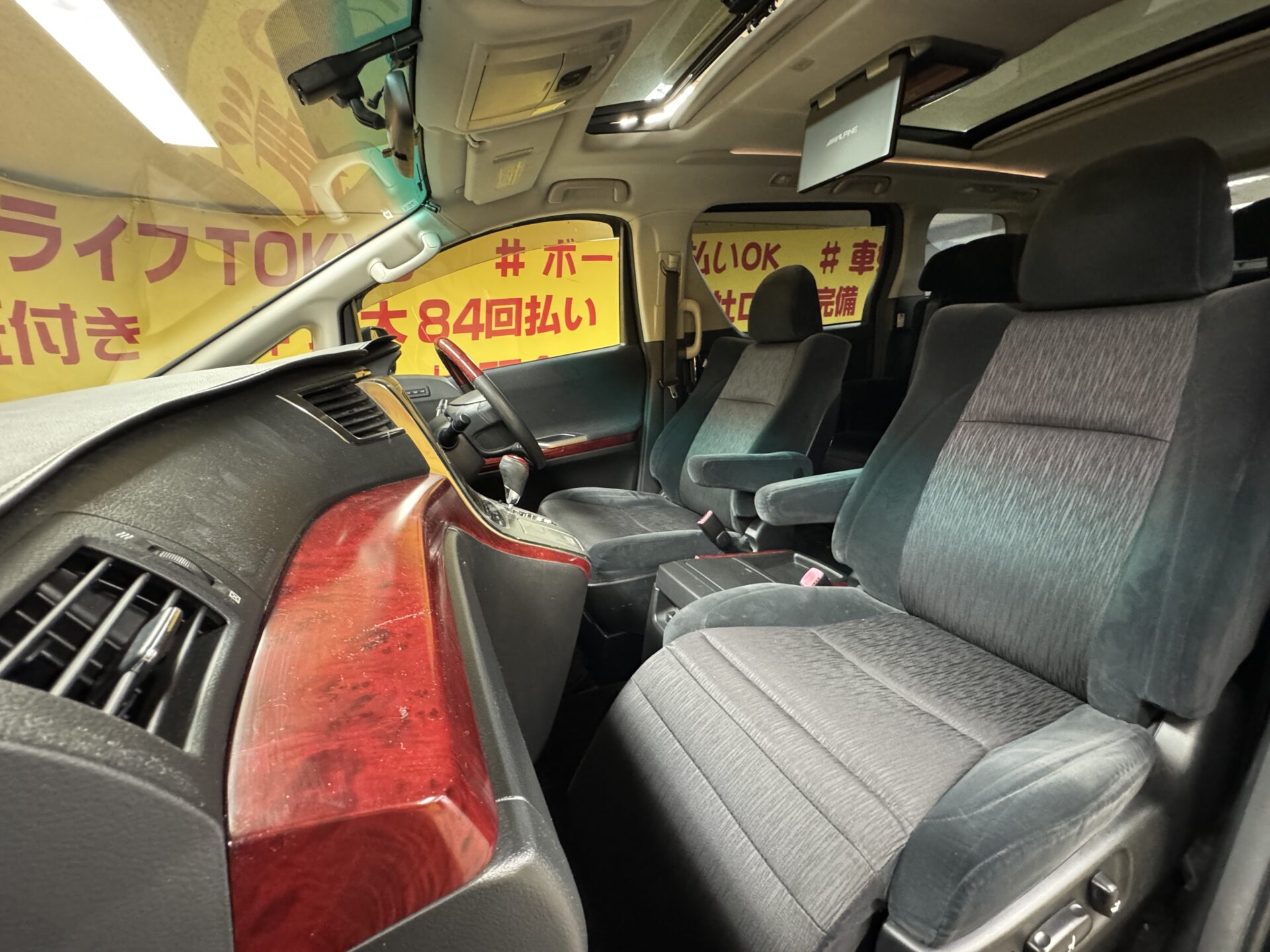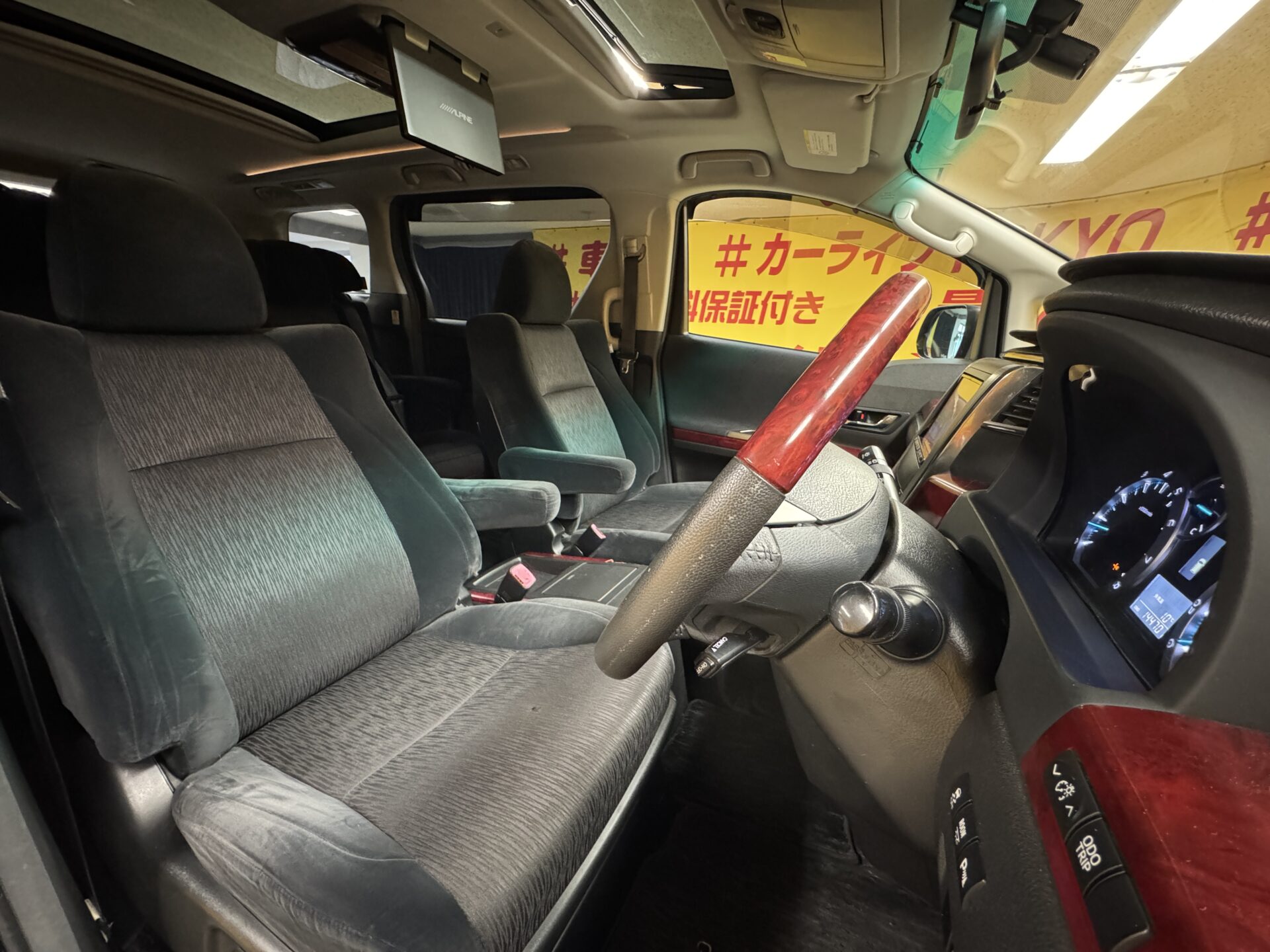 アルパイン8インチナビ 地デジフルセグTV CD DVD Bluetooth ETC バックカメラ ウィンカー付き電動格納ミラー ウッドコンビハンドル ステアリングスイッチ クリアランスソナー オートエアコン デュアルエアコン Wエアコン 両側パワースライドドア パワーバックドア ツインムーンルーフ アルパインフリップダウンモニター 全席パワーシート 運転席メモリーシート 助手席オットマンシート 2列目オットマン付きエグゼクティブシート 社外20インチAW(TRIBE FORCE)