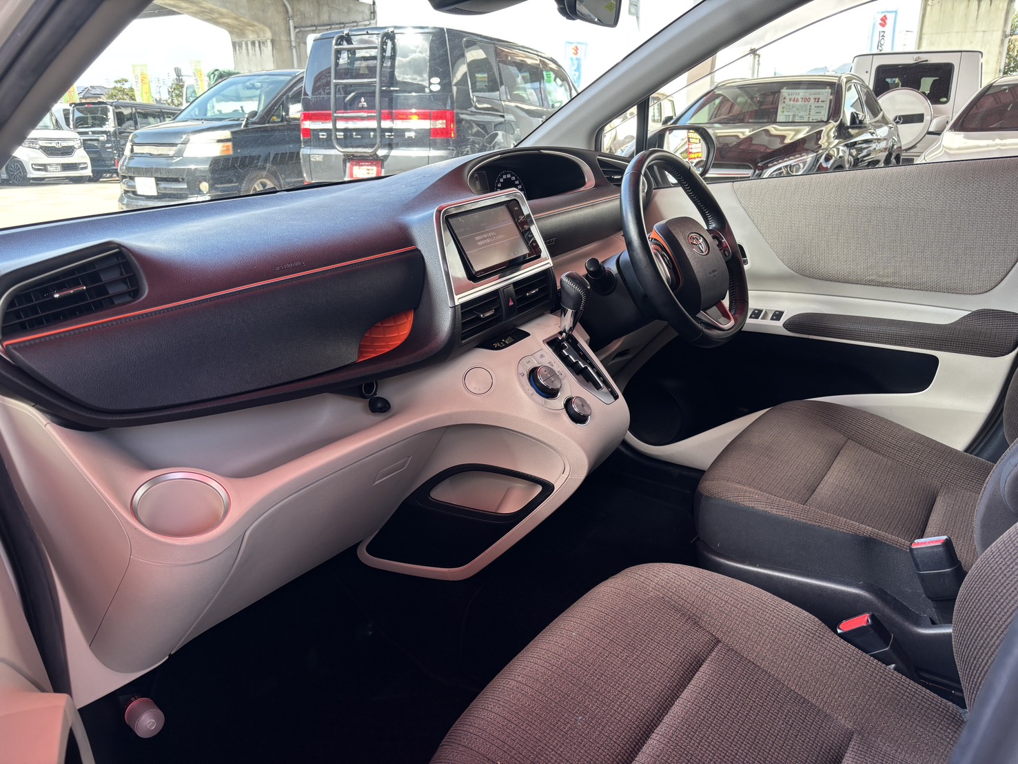 純正SDナビ CD DVD SD 地デジフルセグ Bluetooth ハンズフリー バックカメラ ビルトインETC 革巻ハンドル ステアリングスイッチ オートライト LEDヘッドライト オートハイビーム 車線逸脱警報 衝突被害軽減ブレーキ 横滑り防止装置 車両接近通報装置 ウィンカー付オート電動格納ドアミラー 両側パワースライドドア オートエアコン 3列シート ウォークスルー 7人乗り ドアバイザー スマートキー プッシュスタート ドライブレコーダー