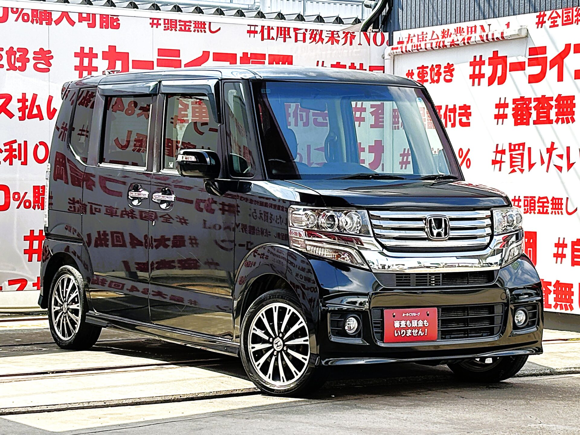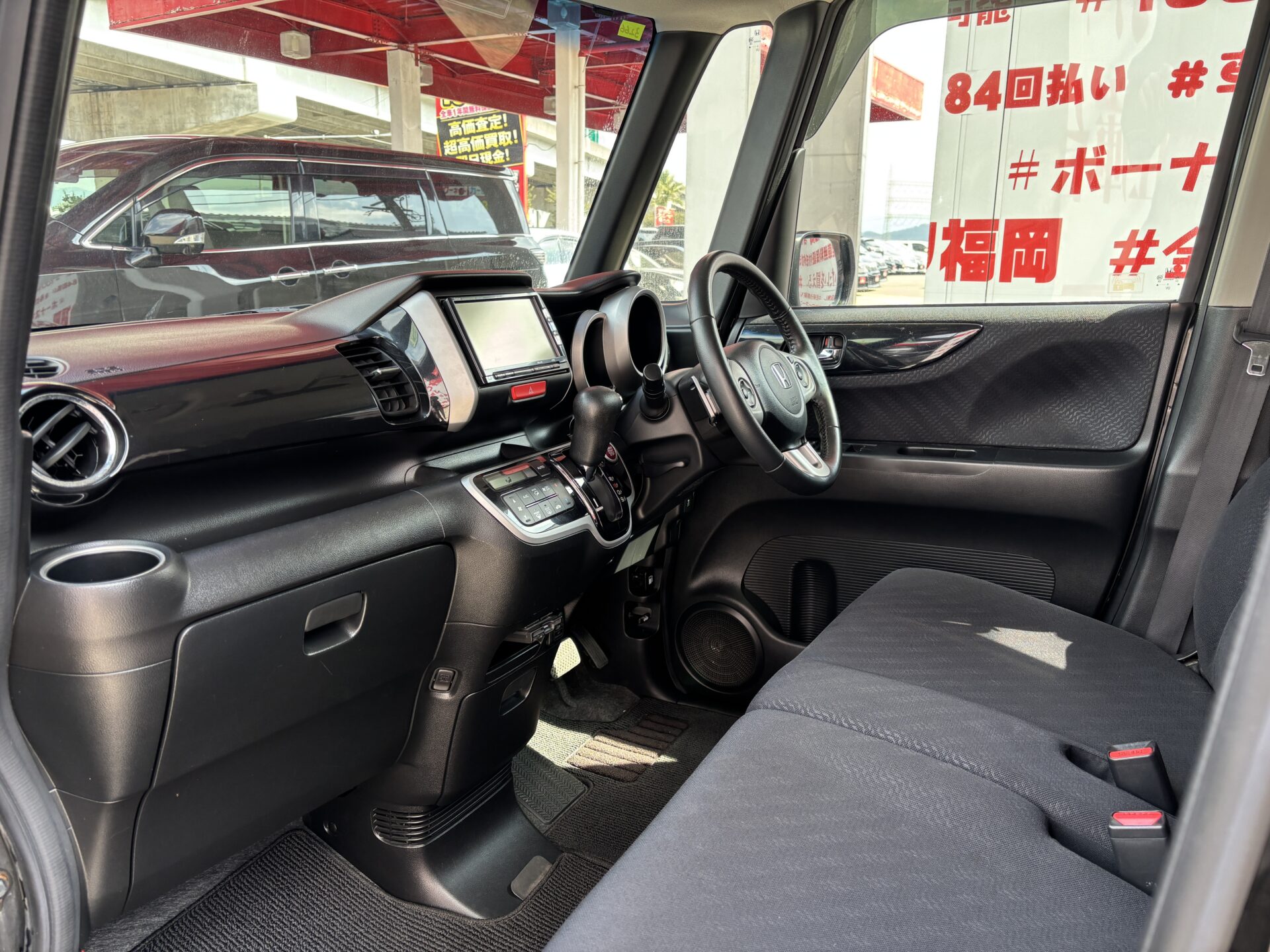 N-BOX カスタム G ターボ パッケージ【ターボ車】 "人気車種Nシリーズ・ハイトワゴン・ブラックカラー再入庫"両側パワースライドドアで乗り降りラクラク、荷物の出し入れラクチン😊パドルシフト付でシフトチェンジも楽々🔥純正ギャザースSDナビ🗾DVD💿地デジフルセグTV内蔵型📺二列目は様々なシートアレンジ可能で使い勝手バツグン😎バック駐車時に安心なバックカメラ付✨夜間でも明るいHIDヘッドライト&フォグランプ🔦デザイン性のあるブルーLEDデイライト付!🔦月々2万円台~OK”車検2年付”🚗福岡店専用HPでも在庫確認可能‼✨【carlifegroup.fukuoka.jp/】で検索🕵️♂️