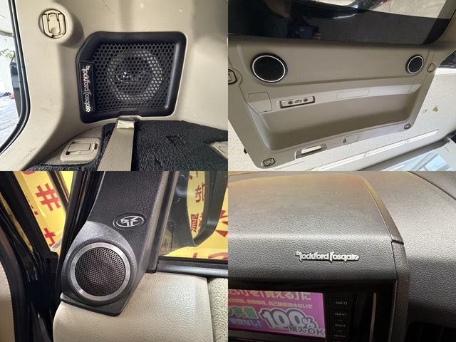 純正HDDナビ DVD ミュージックサーバー CD ETC フロント サイド バックカメラ 革巻きステアリング ステアリングスイッチ パドルシフト 純正フリップダウンモニター ドライブオートセレクター オートライト オートエアコン リアクーラー リアヒーター 両側電動スライドドア パワーバックドア JAOSリアラダー リフトアップ オーバーフェンダー サイドステップ エルフォード16AW HI-MAXマフラー HIDヘッドライト フォグ ホワイトレタータイヤ シートカバー ロックフォードスピーカー サブウーハー