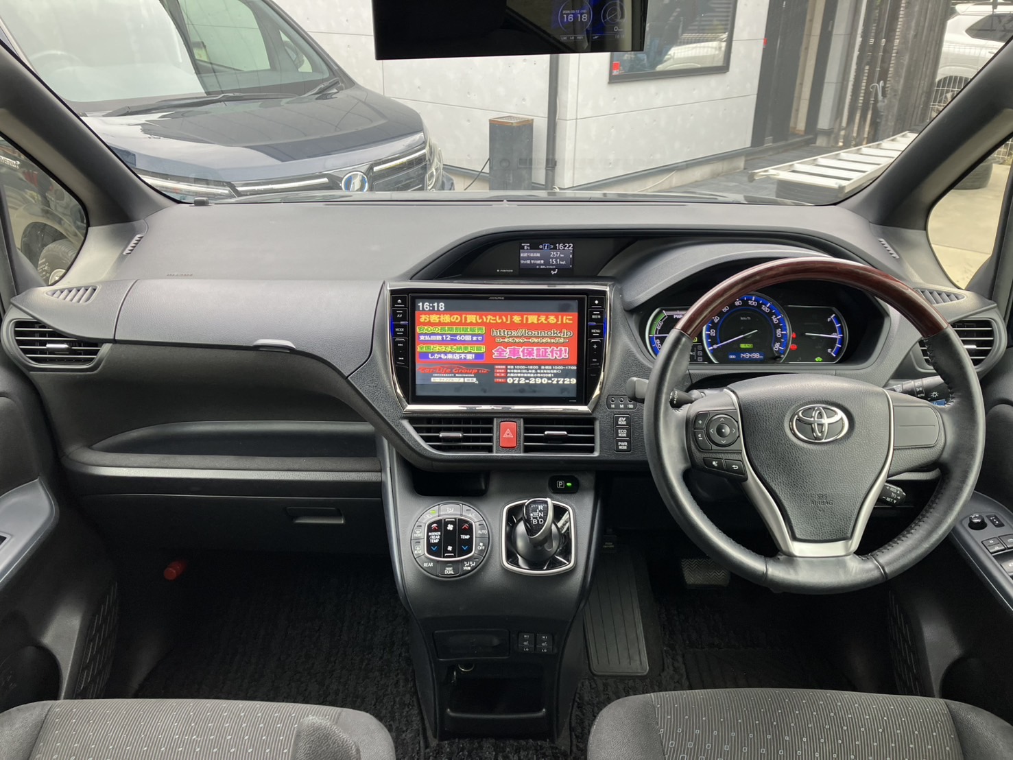 ヴォクシー HV V オプションカラーの「ブラッキッシュアゲハガラスフレーク」💎 天候や光の当たり方によって色々な表情を見せてくれる魅力的なカラーです🌈 10インチ大画面ナビでBluetoothオーディオも接続可能📱 デュアルエアコン、Wエアコンやワンタッチオートスライドドアなど快適装備も充実✨ 後席は大型フリップダウンモニター搭載でお子様も嬉しいですね🤩 🌜大阪店専用HPも要チェック❗carlifegroup.jp で検索🕵️♂️ Instagram・Twitter・TikTokも随時更新中❗❗🌛《1年保証付》