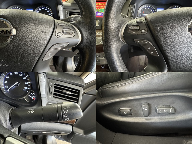 純正SDナビ CD DVD SD 地デジフルセグ Bluetooth ハンズフリー バックカメラ ビルトインETC 前後ドライブレコーダー バニティランプ バニティミラー付きサンバイザー ドアバイザー ウィンカー付き電動格納ドアミラー オールオートパワーウィンドウ 電動リアシェード プッシュスタート スマートキー 革巻きハンドル ステアリングスイッチ オートライト HIDヘッドライト HIDフォグランプ クルーズコントロール オートワイパー デュアルオートエアコン 前席パワーシート 純正16インチAW
