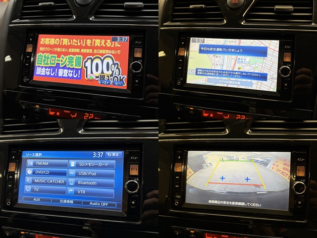 純正SDナビ CD  DVD SD 地デジフルセグ Bluetooth  ハンズフリー バックカメラ ビルトインETC 前後ドライブレコーダー バニティランプ バニティミラー付きサンバイザー ドアバイザー ウィンカー付き電動格納ドアミラー オールオートパワーウィンドウ 電動リアシェード プッシュスタート スマートキー 革巻きハンドル ステアリングスイッチ オートライト HIDヘッドライト HIDフォグランプ クルーズコントロール オートワイパー デュアルオートエアコン 前席パワーシート 純正16インチAW