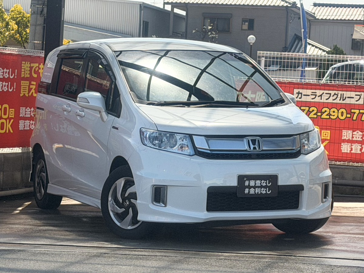 フリードスパイクハイブリッド ジャストセレクション 通常のフリードに比べ、後席がフルフラット可能なレジャー向きのモデル⛺ 収納が豊富にあり、車中泊や釣りなどのレジャーの際に便利です🎣 ハイブリッドで燃費性能も安心です⛽ SDナビでBluetoothオーディオ接続可能🎶 ハーフレザーシートで車内の高級感もあります✨ 多彩な使い方ができるコンパクトカー💨 🌜大阪店専用HPも要チェック❗carlifegroup.jp で検索🕵️♂️ Instagram・Twitter・TikTokも随時更新中❗❗🌛《1年保証付》