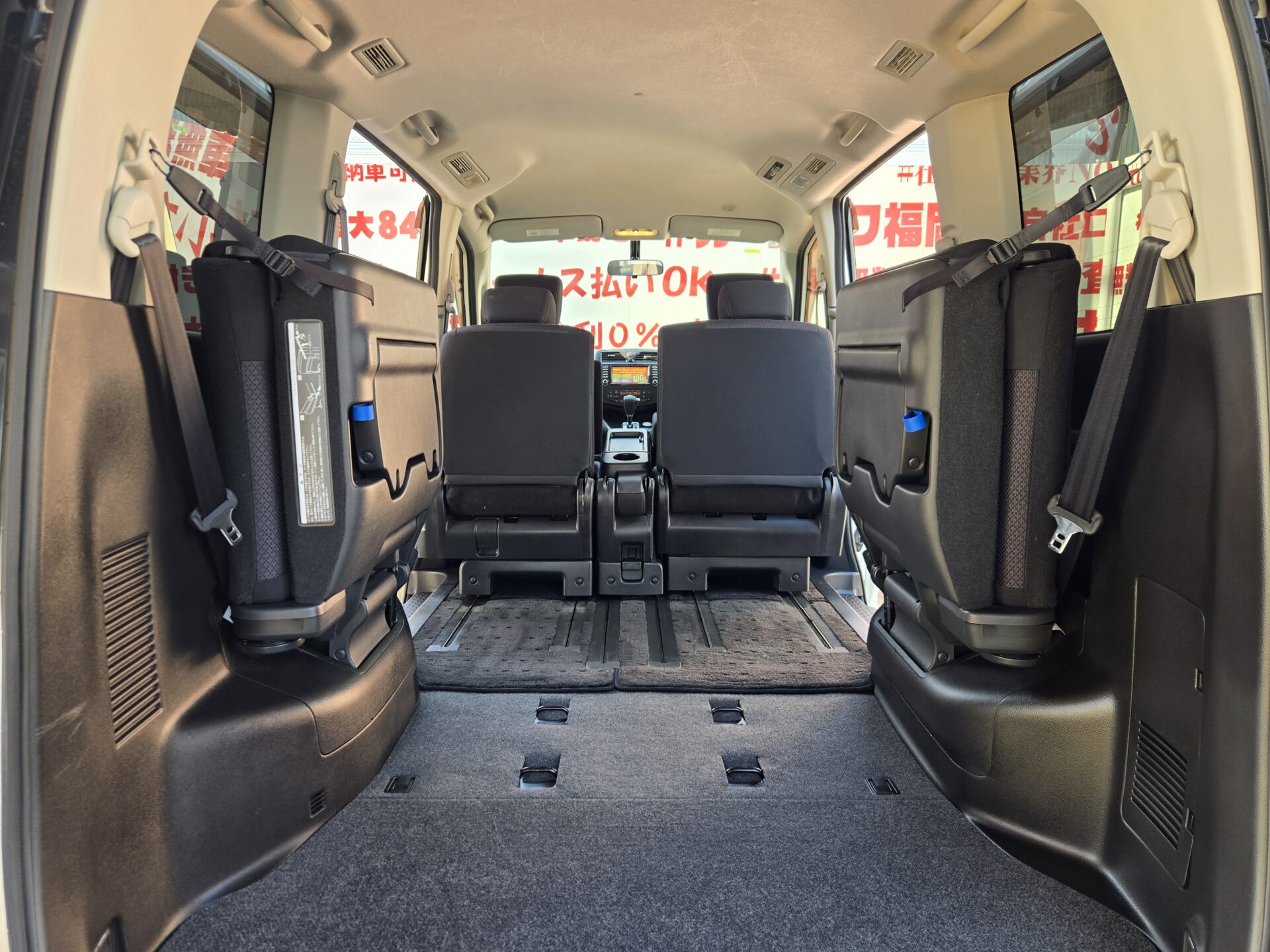 純正HDDナビ CD DVD MSV 地デジフルセグ Bluetooth ハンズフリー バックカメラ サイドカメラ フロントカメラ アラウンドビューモニター ビルトインETC 革巻ハンドル ステアリングスイッチ クルーズコントロール オートライト HIDヘッドライト フォグランプ ウィンカー付電動格納ドアミラー 両側パワースライドドア 横滑り防止装置 アイドリングストップ 100V電源 USBポート オートエアコン 3列シート ウォークスルー リアサイドシェード シートバックテーブル ドアバイザー インテリジェントキー プッシュスタート 純正16インチAW 純正オプションリアスポイラー 納車時新品タイヤ装着