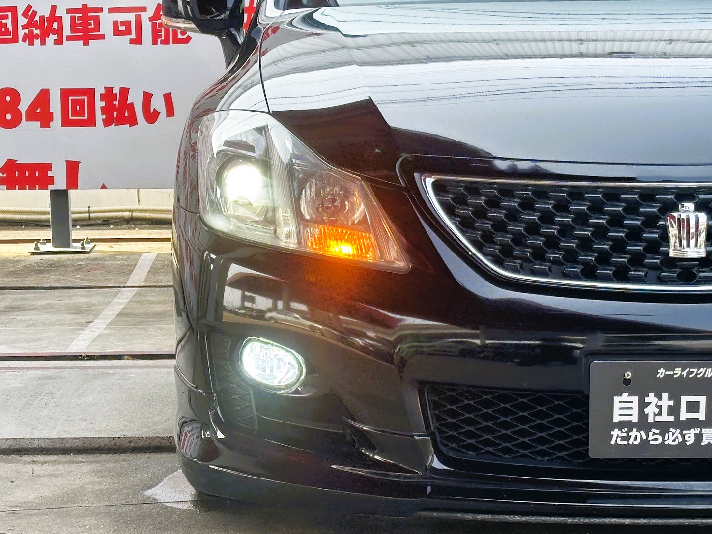 純正SDナビ 地デジフルセグTV CD DVD SD Bluetooth バックカメラ ステアリングスイッチ パドルシフト 自動防眩ルームミラー ヘッドアップディスプレイ レーダークルーズコントロール ブラインドスポットモニター オートライト HIDヘッドライト LEDフォグライト アイドリングストップ スマートキー プッシュスタート 社外車高調ローダウン WORK製19インチAW 納車時タイヤ4本交換