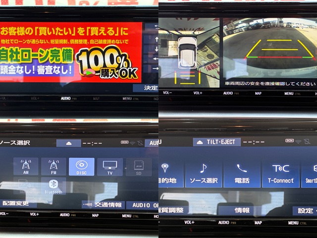 純正HDDナビ CD DVD MSV 地デジフルセグ Bluetooth ハンズフリー バックカメラ サイドカメラ ビルトインETC 革巻ハンドル ステアリングスイッチ オートライト HIDヘッドライト LEDフォグランプ 電動格納ドアミラー 横滑り防止装置 ヒルディセントコントロール シートヒーター 撥水カプロンシート ドアバイザー インテリジェントキー 純正17インチAW パートタイム4WD