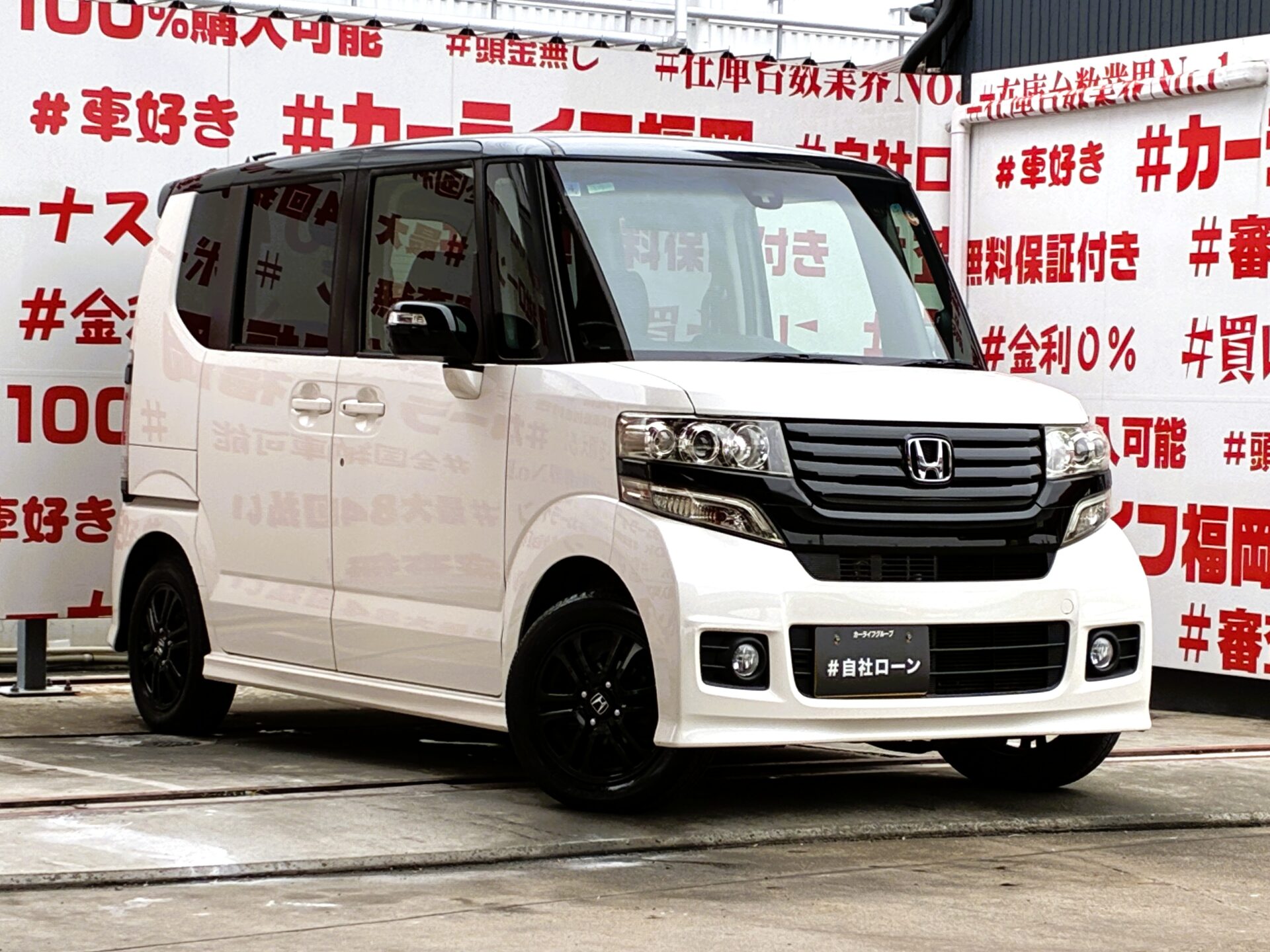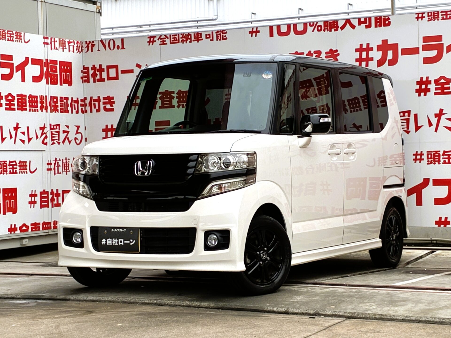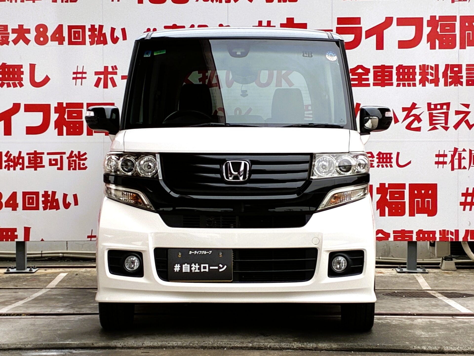 N-BOXカスタム G・Aパッケージ 🌟パール/黒ツートン🌟月々2万円台~OK👌ケンウッドメモリーナビ🗾地デジフルセグTV内蔵型🖥️DVD📀Bluetoothオーディオ再生🎵ミュージックサーバー付🎶バックカメラ・衝突被害軽減ブレーキ(CTBA)安全装備も充実👍JC08モード25.2km/Lの低燃費🍃🚗福岡店専用HPでも在庫確認可能‼✨【carlifegroup.fukuoka.jp/】で検索🕵️♂️