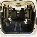 純正マルチナビ 地デジフルセグTV CD DVD SD Bluetooth ミュージックサーバー バックカメラ フリップダウンモニター ステアリングスイッチ ビルトインETC オートライト HIDヘッドライト LEDフォグライト ウィンカー付き電動格納ミラー キーレス プッシュスタート スマートキー 前後障害物センサー Wエアコン オットマン付きキャプテンシート 3列シート ウォークスルー 両側パワースライドドア パワーバックドア 横滑り防止装置 サイドバイザー 純正18インチAW