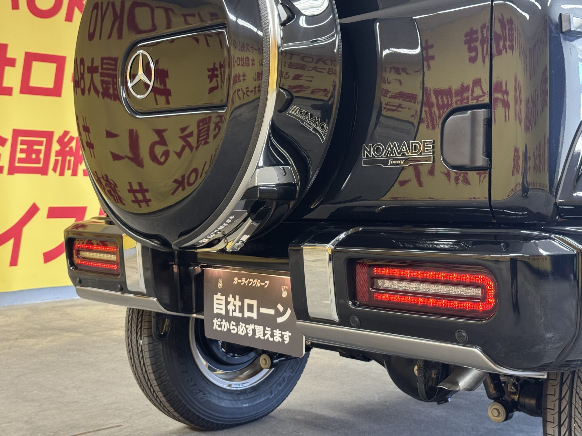 JIMNY NOMADE ジムニー ノマド FC “little G.ADVANCE”【4WD】【カスタム】💎DAMD✕カーライフ"新車コンプリートカー"💎メルセデスベンツ・Gクラス(ゲレンデ)仕様💎アドバンスタイプ全国店頭在庫販売最速💎415COBRAのライトセーバーテールレンズを採用・シーケンシャルウインカータイプ😮🎉ジムニーシリーズ待望の5ドアが満を時してTOKYO店に再入庫いたしました🌈本格4WDとして機能性を突き詰めたインテリア✨アダプティブクルーズコントロール+デュアルブレーキサポート等SUZUKIの技術の結晶が詰まった1台です🔥燃費性能🌍に優れたK15B型エンジンが高い出力とトルクを発揮しサイズ感に負けない力強い走りを実現します🚗電子制御ブレーキLSDトラクションコントロール標準装備でどんな悪路もお任せください😁✌️ヒルホールドコントロール+ヒルディセントコントロールで登り坂も下り坂も安心して発進できます🔥🤩自社ローン・提携ローン💫各種オートローン完備💫 TOKYO店専用HPにて更新中❗ carlifegroup.tokyo.jpで検索🕵️‍♂️🌛